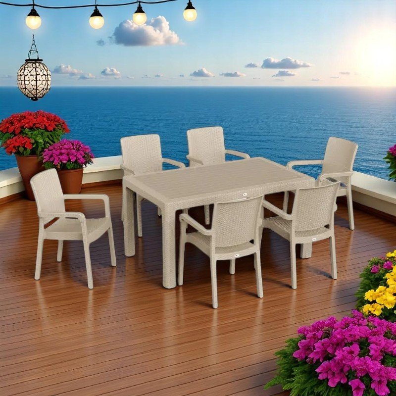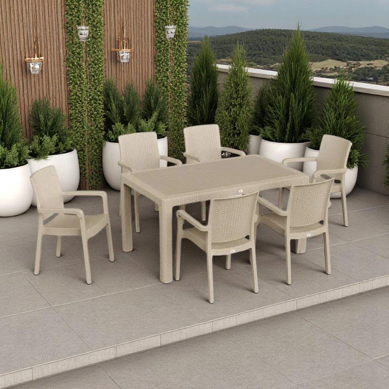 Пластичен сет АРМ маса + 6 столици – Капучино