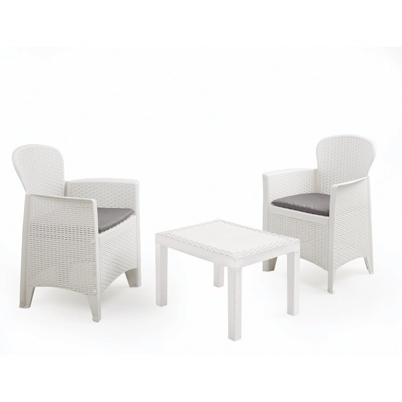 Прогарден сет 2 фотељи и масичка АКИТА БЕЛА со перници