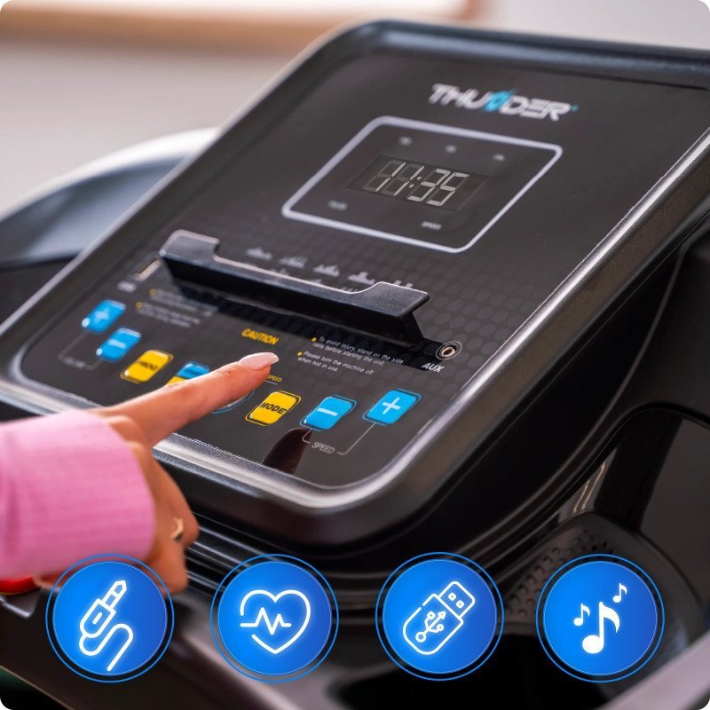 ТHUNDER®️ G8000 е совршено решение за сите оние кои сакаат да се грижат за своето физичко здравје од удобноста на својот дом. Благодарение на својата стабилна конструкција и интуитивни функции, секој тренинг со оваа трака е лесен, удобен и ефективен.